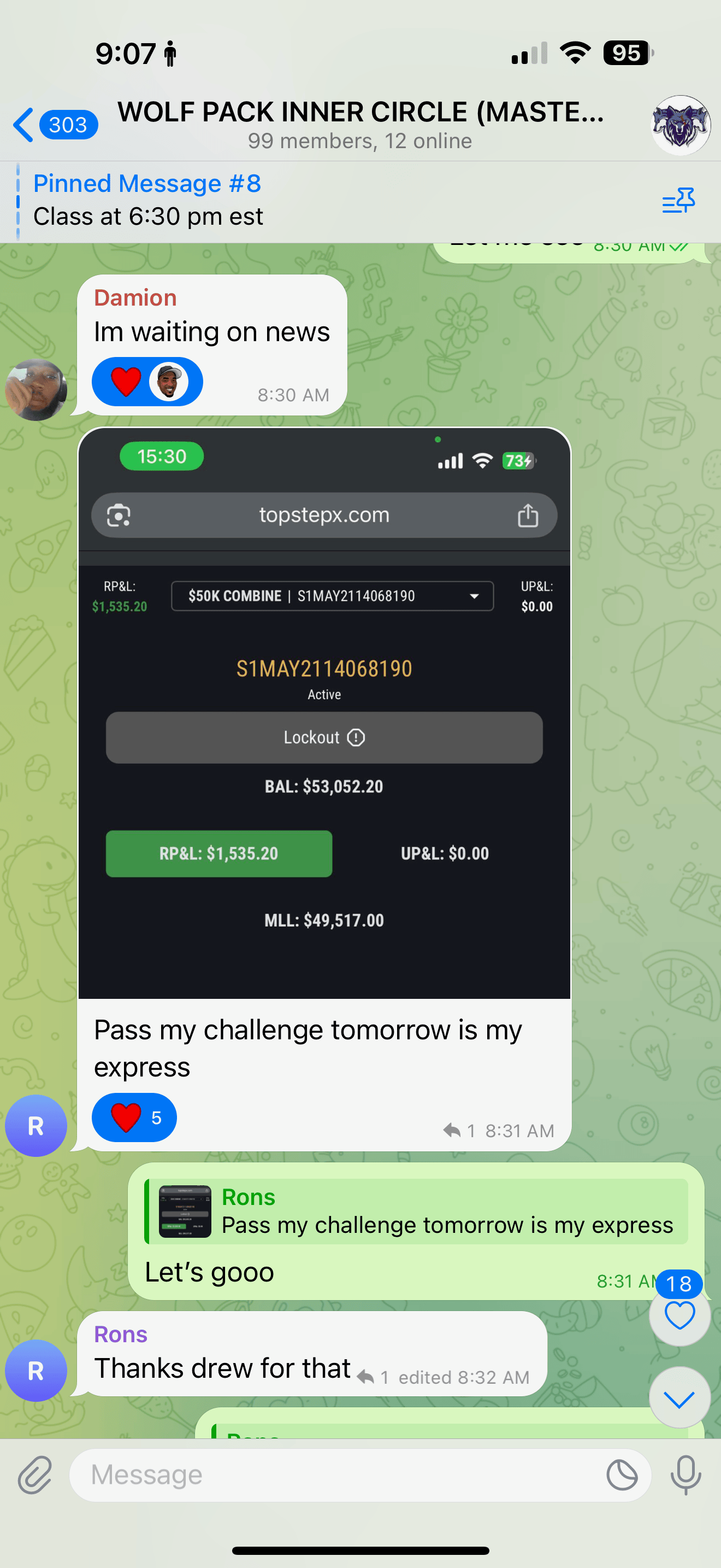 Inside our private Wolf Pack Inner Circle, Rons is on fire.