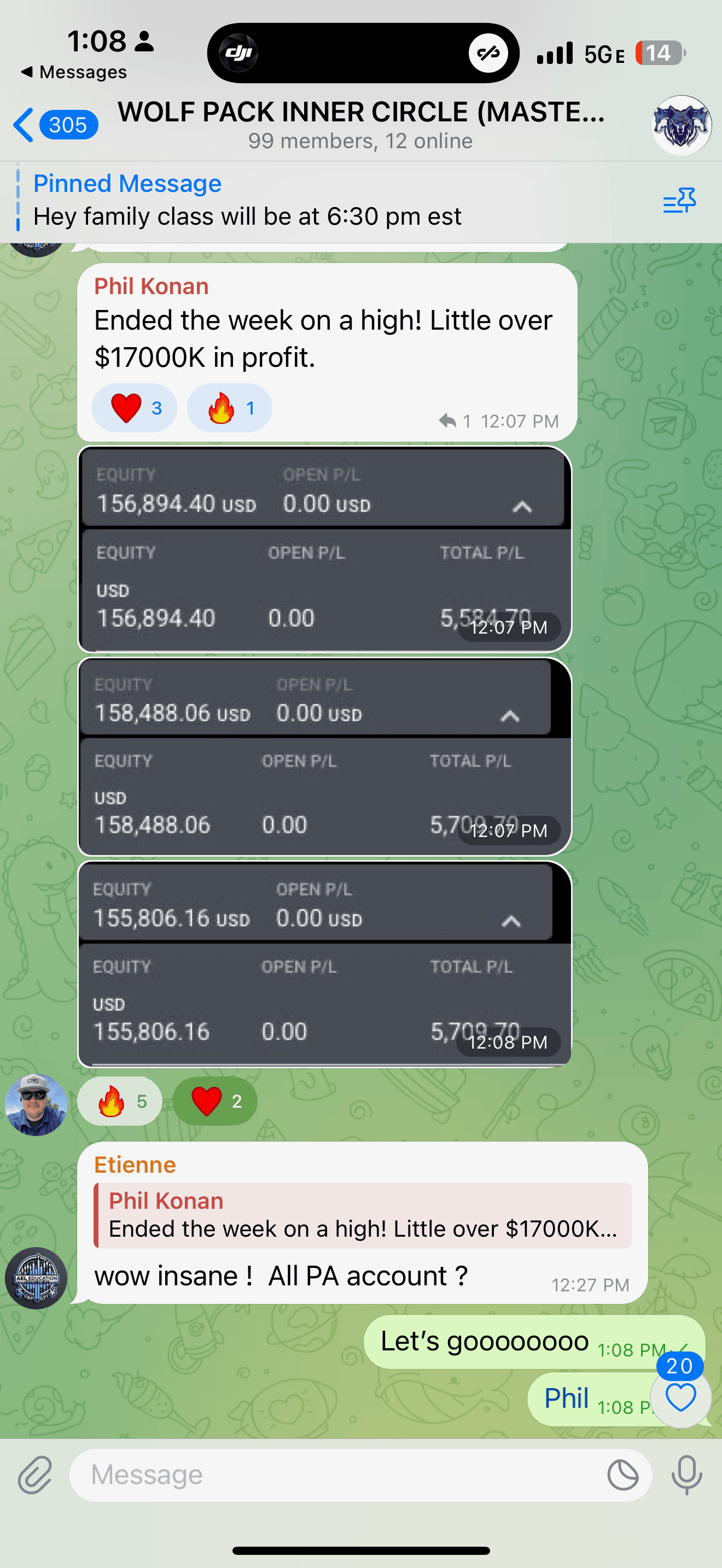 The screenshot to the left? It’s from a live chat where Phil, one of our Inner Circle traders, shared his verified profits across three funded accounts